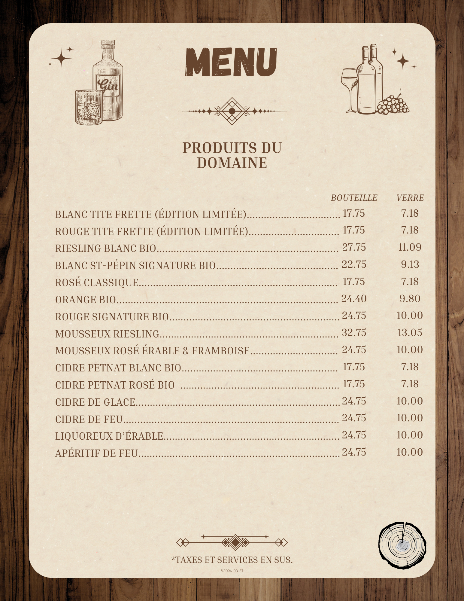 • Tire sur la neige : Un incontournable de notre saison! Venez savourer la traditionnelle tire sur la neige, disponible de midi à 16h et de 18h à 21h.
