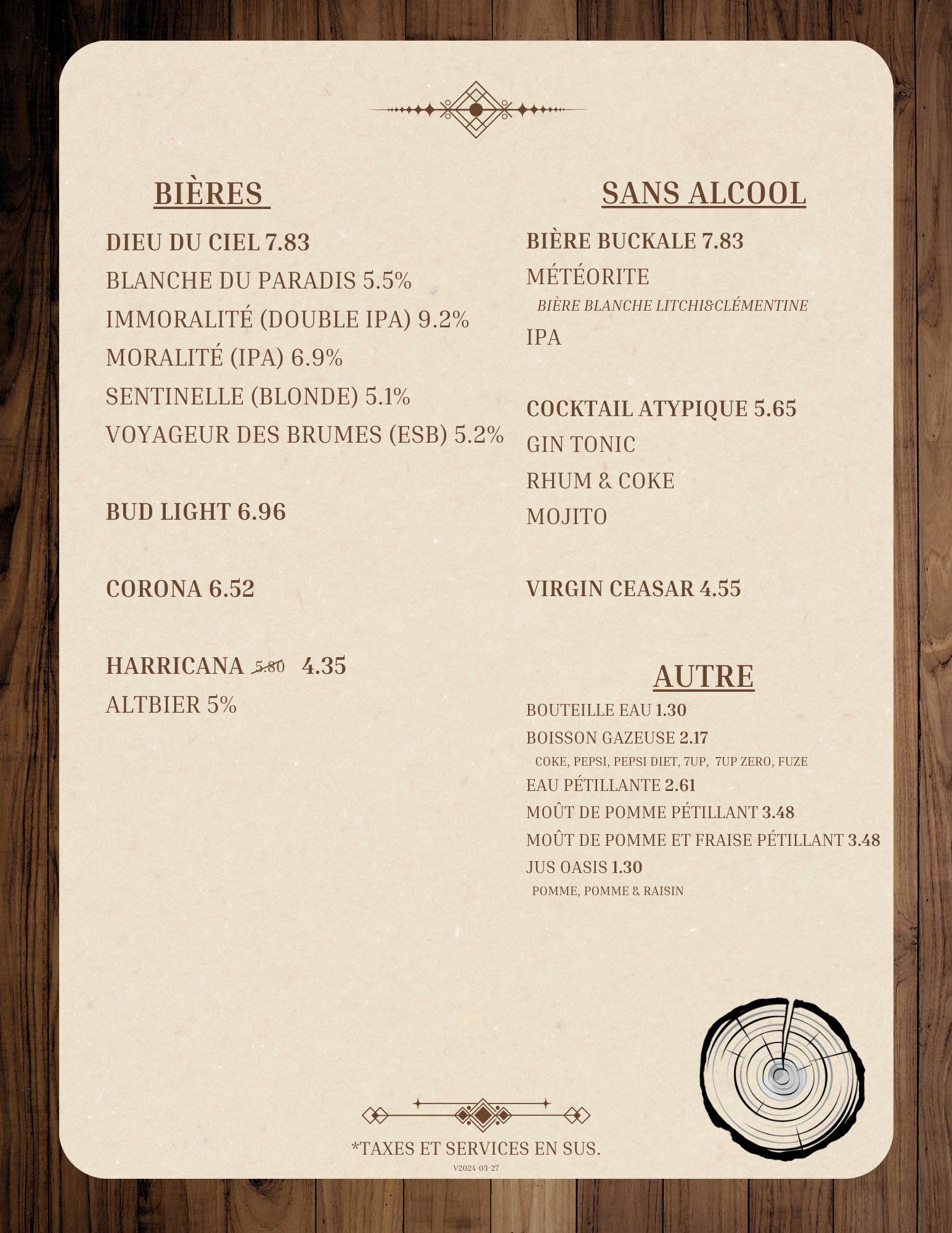 • Repas à emporter ou en livraison : Malheureusement, nous ne sommes pas en mesure d’offrir ce service.