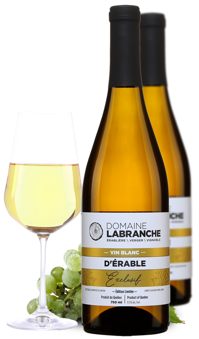 On jurerait qu’il s’agit d’un vin blanc et pourtant, la matière première de ce fort élégant produit est bel et bien notre érable national! Il y a de la classe à revendre dans ce vin aux arômes particulièrement délicats qui vont rehausser avec distinction des canapés de fruits de mer. Une première au Québec : la macération du vin d’érable avec le marc de Frontenac blanc. Une idée de génie qui va faire des petits!